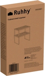 Ši bambukinė virtuvinė lentyna Ruhhy pasižymi atsparumu drėgmei ir neįgeria kvapų, todėl idealiai tinka jūsų prieskoniams ir maisto produktams laikyti. Elegantiškas dizainas, derinamas su juodu metaliniu rėmu, suteikia virtuvei modernų ir natūralų įvaizdį.