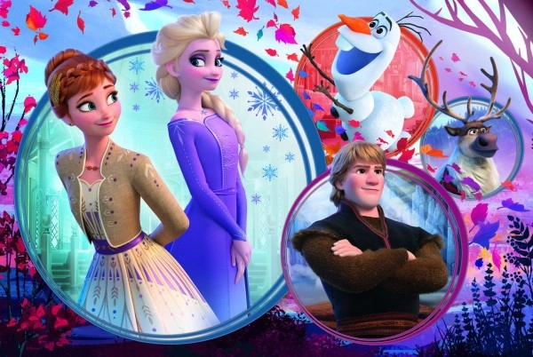 Atraskite dėliojimo džiaugsmą su Disney Frozen 2 motyvu. Vaikiška Trefl dėlionė su paveikslu „Seserų nuotykis“ pateikia spalvingą sceną su Elsa, Ana, Olafu, Kristofu ir Svienu. Preciziškas iškirtimas ir kokybiška spauda garantuoja, kad detalės tiksliai susijungs, o galutinis vaizdas bus ryškus ir aiškus.