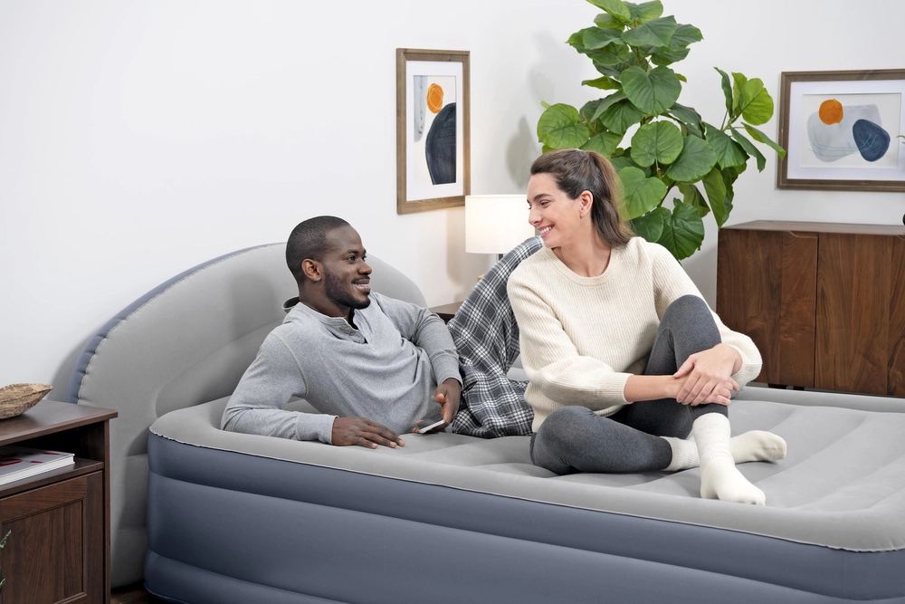 Dvisluoksnis pripučiamas čiužinys BESTWAY Tritech LoungeLux siūlo patogią miegą 2 asmenims, padidintą aukštį patogiam atsikėlimui ir integruotą elektrinį siurblį greitam pripūtimui ir išleidimui. Malonus semidžo (velūro) paviršius lengvai valomas, integruotas atlošas tarnauja kaip pagalvė, o apsauginis kraštas aplink perimetrą neleidžia nuslysti miego metu. Komplekte yra nailoninis krepšys patogiam nešiojimui ir laikymui.