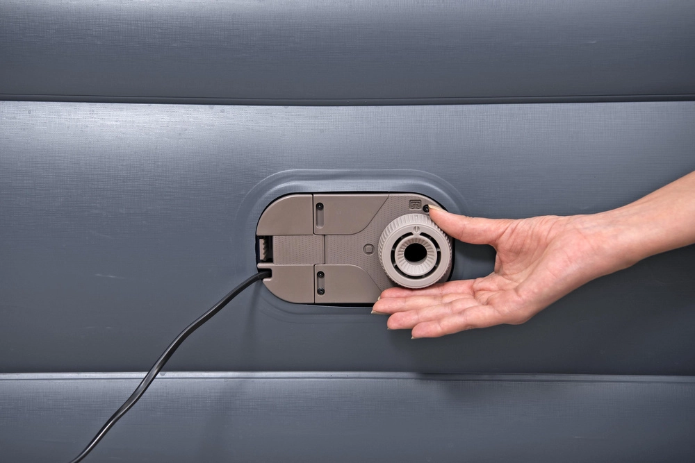 Integruotas siurblys leidžia patogiai pripūsti ir išleisti orą be papildomos įrangos – idealu, kai lovą reikia greitai paruošti.