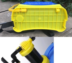 16 l talpa leidžia dirbti ilgiau be dažno papildymo. Ergonomiški diržai tolygiai paskirsto svorį ant nugaros, todėl purškimas patogus net didesniuose plotuose.