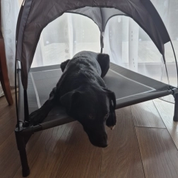 Šis produktas idealiai tinka didelėms veislėms, tokioms kaip borderkoliai, bigliai ar auksaspalviai retriveriai. Be to, jis suteikia jūsų augintiniui saugumo pojūtį dėl šešėlį suteikiančio baldakimo, kuris primena natūralų prieglobstį.