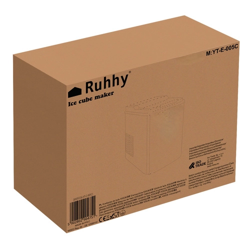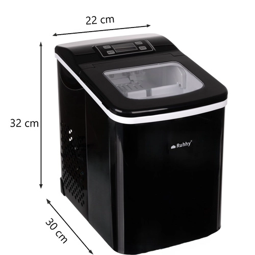Kompaktiškas RUHHY ledo gaminimo aparatas pirmąsias kubeles paruoš jau per 6 minutes ir pagamina iki 12 kg ledo per 24 valandas. Siūlo 2 kubelių dydžius (S/L), aiškų LCD ekraną, laikmačio programatorių atidėtam startui ir savivalymo funkciją lengvai priežiūrai. Idealu namams, biurui ir vakarėliams.