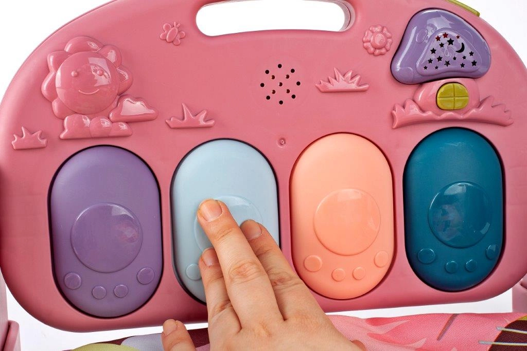 Edukacinis žaidimų kilimėlis su pianinu ir barškučiais – rožinis