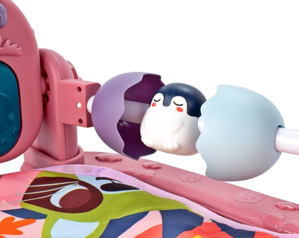 Šis rožinis edukacinis kilimėlis sukuria saugią ir įkvepiančią erdvę kasdieniams žaidimams. Spalvingas lankas su pakabinamais žaislais skatina kūdikį siekti ir suimti, taip lavindamas akių–rankų koordinaciją. Interaktyvus pianinukas su apšviestais klavišais siūlo 3 garso režimus – gamos Do–Re–Mi–Fa tonus, trumpus garsus (pvz., vaikišką juoką) ir ilgesnes melodijas – taip prisidedant prie klausos ir ritmo pojūčio vystymo.