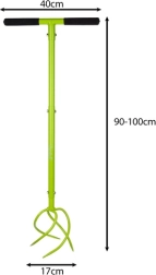 Reguliuojamas 90–100 cm aukštis leidžia prisitaikyti prie jūsų ūgio, todėl galite dirbti stovint be nugaros skausmų. Spiralės formos dantys lengvai įsikabina į dirvą, pagerina jos struktūrą ir paruošia sėjai ar sodinimui. Idealu lysvėms, jų kraštams ir tarpueiliams.