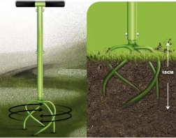 Dvigubi spiralės formos dygiliai įsiskverbia į žemę, ardo suslėgtus sluoksnius ir gerina oro bei vandens cirkuliaciją. Idealu lysvių paruošimui prieš sodinimą.