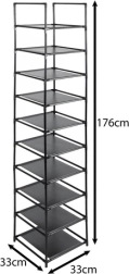 Paprastas surinkimas be įrankių trunka vos penkias minutes – net ir nepatyrusiems naudotojams. Dešimties lentynų spinta suteikia daug vietos iki dešimčiai porų batų.