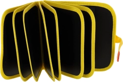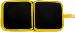 Knygelė atsiveria kaip dėklas ir dėl velcro užsegimo tvirtai laikosi. Lengva ir kompaktiška – ideali kelionėms ir pramogoms kelyje.