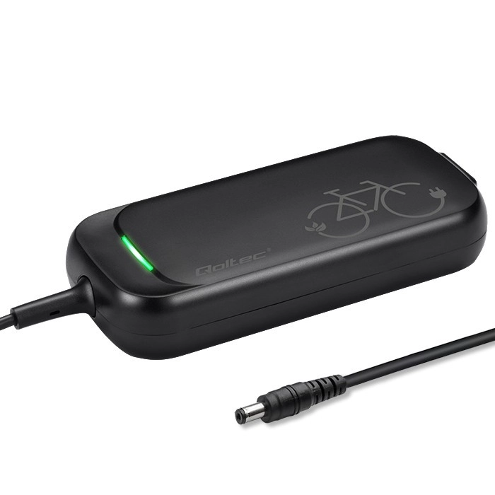 Qoltec įkroviklis siūlo 42V įtampą, 2A srovę ir yra skirtas 36V ličio akumuliatoriams. Jį galima lengvai prijungti prie standartinės 230V rozetės, o jo pažangi elektronika apsaugo bateriją įkrovimo metu. Taip pat turi LED indikatorių patogiam įkrovimo būsenos stebėjimui. Raudona reiškia įkrovimą, žalia – visišką įkrovą.