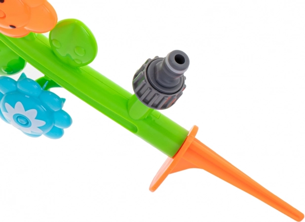 Montavimas itin paprastas: įsmeikite smaigalį į žemę, prijunkite sodo žarną per standartinę greitjungtį ir viskas. Patvari plastikinė konstrukcija atlaikys ne vieną sezoną, o ryškios spalvos vis vėl kvies žaisti.