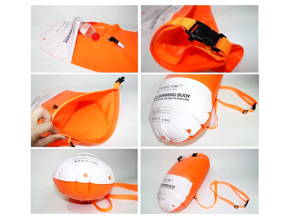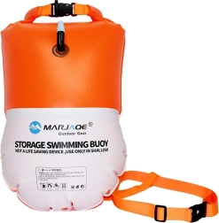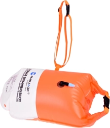 Padidinkite saugumą ir komfortą plaukiodami atvirame vandenyje su šia pripučiama plūdė su integruotu 10 l talpos vandeniui atspariu maišu. Dėl ryškios oranžinės spalvos ji užtikrina puikų matomumą, suteikia papildomą plūdrumą ir leidžia išlaikyti raktus, telefoną ar dokumentus sausai. Lengva konstrukcija, ritininis (roll-top) užsegimas ir reguliuojamas juosmens diržas daro ją idealiu pasirinkimu plaukikams, triatlonininkams ir irkleninkams.