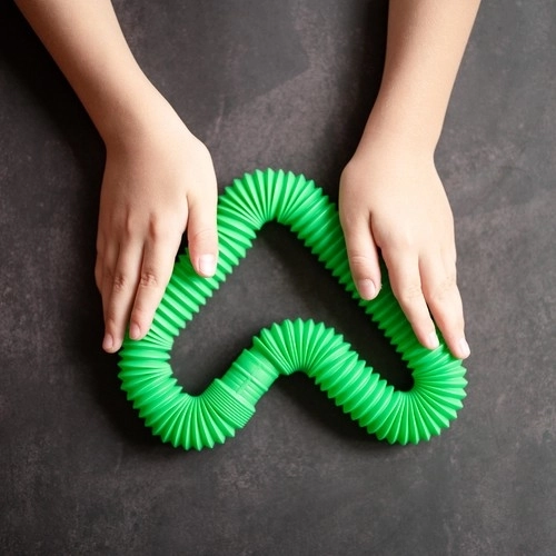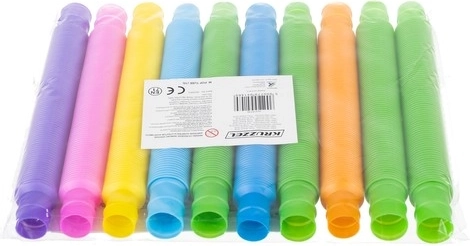 Šiuos vamzdelius galima ne tik sujungti – jie taip pat išsiplečia, o išskleidžiant ir suskleidžiant skleidžia malonų garsą. Tai paverčia juos tobulais žaislais įtampai mažinti ir žaismingam kūrybiškumui lavinti.