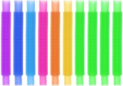 Šis 10 sensorinių vamzdelių rinkinys sukurtas lytėjimo ir klausos stimulacijai. Vamzdeliai, prieinami 7 skirtingų spalvų – geltona, rožinė, violetinė, oranžinė, mėlyna, tamsiai mėlyna ir žalia, yra idealūs edukaciniams žaidimams, pavyzdžiui, raidžių mokymuisi, skaičiavimui ir kt. Jų jungimo galimybė leidžia kurti įvairias formas, tokias kaip apskritimai ir kvadratai, kas skatina vaikų kūrybiškumą ir suteikia valandų valandas pramogų. Suaugusiesiems jie tarnauja kaip puiki priemonė stresui mažinti.