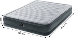 Ieškote patogaus ir patvaraus sprendimo nakvynei svečiams ar kelionėse? Ši dvigulė pripučiama INTEK lova suteikia aukštą miego komfortą dėl minkšto veliūrinio paviršiaus, paaukštinto profilio ir tolygiai paskirstyto svorio. Integruotas elektrinis siurblys užtikrina greitą pripūtimą ir oro išleidimą per kelias minutes.