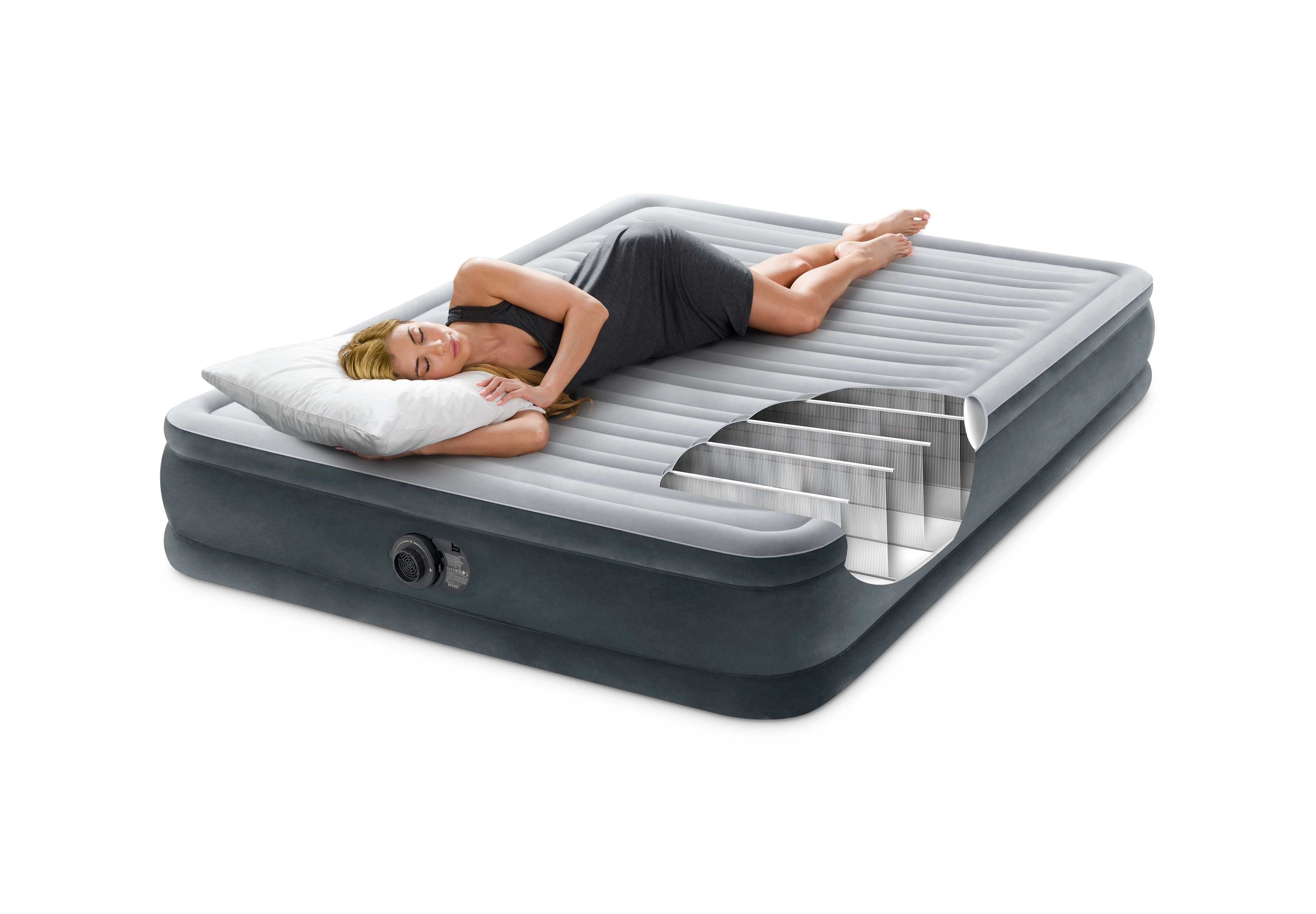 Integruotas siurblys leidžia greitai ir be pastangų pripūsti ar išleisti orą. Tereikia prijungti prie tinklo ir lova per akimirką paruošta naudoti.