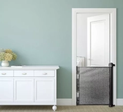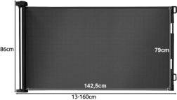 Praktiški ištraukiami apsauginiai varteliai su tinkleliu apsaugo vaikus ir augintinius nuo pavojingų zonų namuose. Lengvai valdomi, taupantys vietą, o dėl juodos spalvos dizaino dera prie bet kokio interjero. Išsiplečia iki 160 cm, aukštis 86 cm, patvarus PVC tinklas ir tvirti metaliniai bei plastikiniai komponentai užtikrina patikimą užtvarą prie durų, koridoriuose ir prie laiptų.