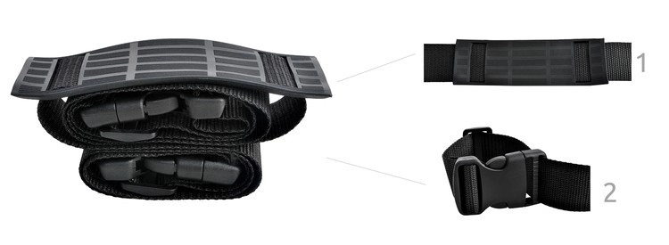 Sutvirtinta peties dalis paskirsto spaudimą ir neleidžia dirželiui įsirėžti, kai nešamas sunkesnis vežimėlis ar priemonė.
