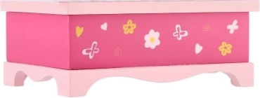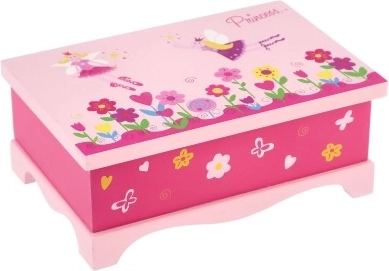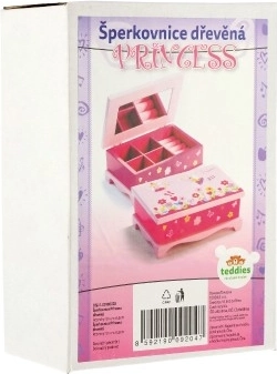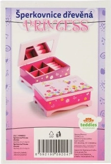 Ši rožinė medinė papuošalų dėžutė Princess derina kerintį vaizdą su praktišku išdėstymu. Dėl veidrodėlio vidinėje dangtelio pusėje ir penkių apgalvotų skyrelių papuošalai bei smulkmenos visada bus gražiai sutvarkyti. Subtili gėlių dekoracija ir užrašas Princess kuria pasakišką atmosferą, puikiai tinkančią vaikų kambariui.