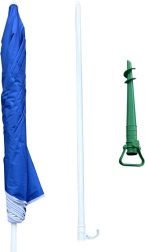 Aštrus smaigalys ir tvirta konstrukcija leidžia greitai įtvirtinti į smėlį ar gruntą ir patikimai išlaiko skėtį vietoje.