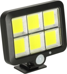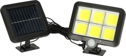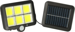 Saulės lempa su judesio ir sutemų jutikliu, aprūpinta 120 LED diodų, idealiai tinka lauko erdvių apšvietimui ir saugumui užtikrinti dėl judesio aptikimo.