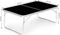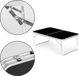 Šis kompaktiškas stalas turi apsaugas nuo atsitiktinio susilankstymo ir patogią transportavimo rankeną, todėl juo paprasta naudotis. Galima sulankstyti į lagaminėlį, taip palengvinant transportavimą ir laikymą.
