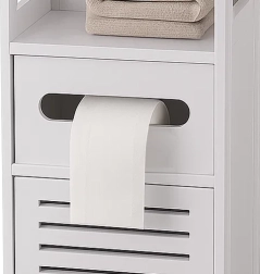- Papildoma laikymo vieta rankšluosčiams, tualetiniam popieriui, kosmetikai ir valymo priemonėms.