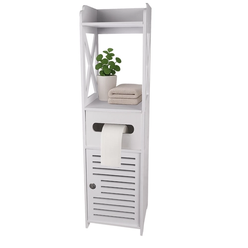 Atnaujinkite savo vonios kambarį su šia balta pastatoma spintele, kurios laikui nepavaldus ir praktiškas dizainas suteikia daug privalumų: