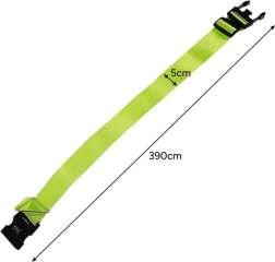 Žalias Trizand bagažo diržas užtikrina stabilų ir saugų jūsų bagažo pritvirtinimą. Reguliuojamas ilgis iki 390 cm leidžia pritaikyti jį visiems lagaminų dydžiams – nuo kabininių iki didelių kelioninių krepšių.