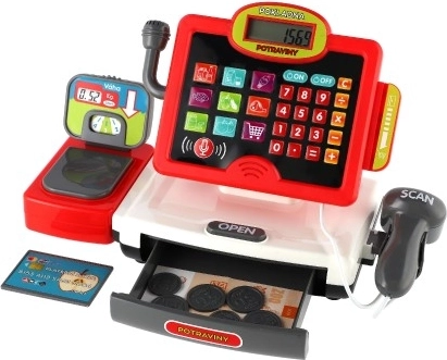 Linksmas ir lavinamasis vaikiškas elektroninis kasos aparatas su priedais mažiesiems prekybininkams. Komplekte yra šviesą ir garsą skleidžiantis skeneris, banknotų ir monetų muliažai, kortelių skaitytuvo lizdas, veikiantis skaičiuotuvas ir vaisių bei daržovių svarstyklės. Idealiai tinka lavinti vaizduotę ir pagrindinius skaičiavimo įgūdžius.