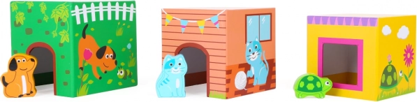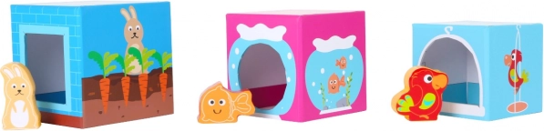 Šeši mieli mediniai gyvūnėliai telpa į atitinkamas angas kaladėlėse. Vaikai lavina rūšiavimą, poravimą ir vaizduotę.