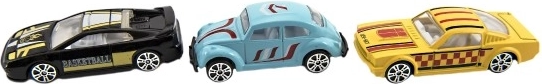 Pakuotėje rasite įvairių tipų automobiliukų rinkinį, kuris leidžia be galo daug pramogų ir plečia kolekciją.