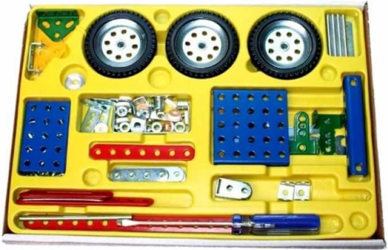 Atraskite legendinę čekų konstruktorių rinkinę MERKUR, kuri sujungia pramogą ir mokymąsi. Rinkinyje yra 174 tvirtos metalinės detalės, ratukai, varžteliai ir veržlės – iš jų galima surinkti visureigį motociklą, motociklą su šonine priekaba ir žaismingą triratį. Dėl aiškios instrukcijos statyba pavyks net pradedantiesiems.