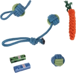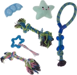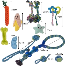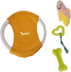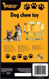 Žaislų rinkinys šunims PURLOV 16v1 tinka visiems šunims ir šuniukams – jis ne tik linksmina, bet ir padeda prižiūrėti dantų sveikatą.
