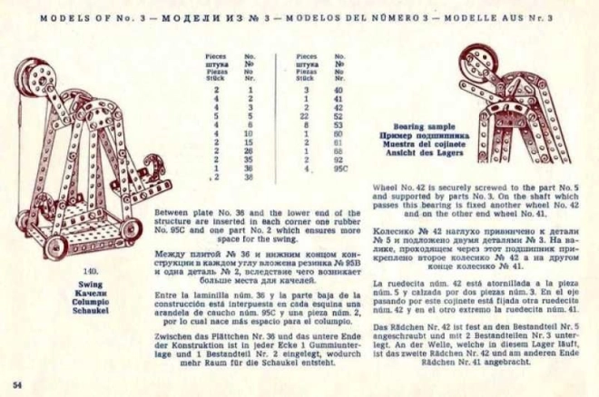 Rinkinyje yra didelė, 94 puslapių instrukcijų knygelė 4‑ojo dešimtmečio stiliumi, skirta rinkiniams MERKUR Classic C03, C04 ir C05. Galėsite surinkti iki 141 skirtingo modelio – nuo transporto priemonių ir mechanizmų iki techninių įrenginių. Ideali dovana kūrybingiems vaikams nuo 8 metų, technikos entuziastams ir retro dizaino gerbėjams.