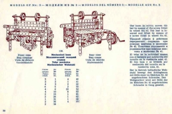 Rinkinyje yra didelė, to laikmečio stiliumi parengta 94 puslapių instrukcijų knygelė su paveiksliniais žingsniais. Instrukcijos papildytos originaliais tekstais anglų, vokiečių, ispanų ir rusų kalbomis ir pritaikytos MERKUR classic C03, C04 ir C05 rinkiniams.