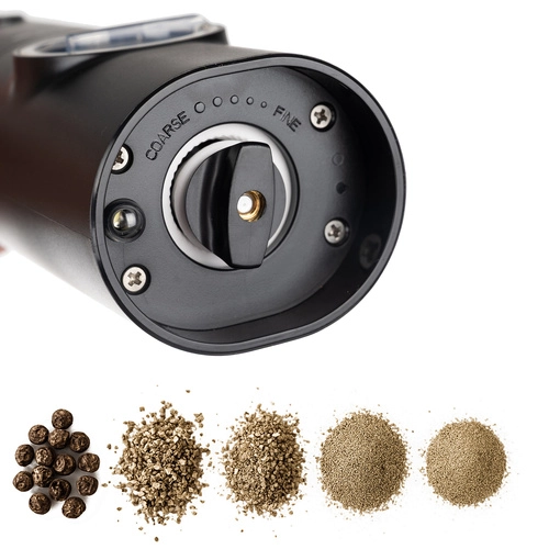 Dėl LED apšvietimo visada matysite prieskonių kiekį net esant prastam apšvietimui. Skaidrus langelis leidžia lengvai patikrinti likutį. Malūnėliai maitinami baterijomis (po 4× AAA kiekvienam malūnėliui) ir patogiai valdomi vienu mygtuku.