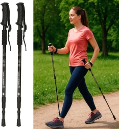 Sulankstomos trekingo lazdos, skirtos Nordic Walking mėgėjams, derina patvarumą ir lengvumą. Pagamintos iš aliuminio, šios lazdos siūlo greitą ilgio reguliavimą ir patogias ergonomines rankenas.
