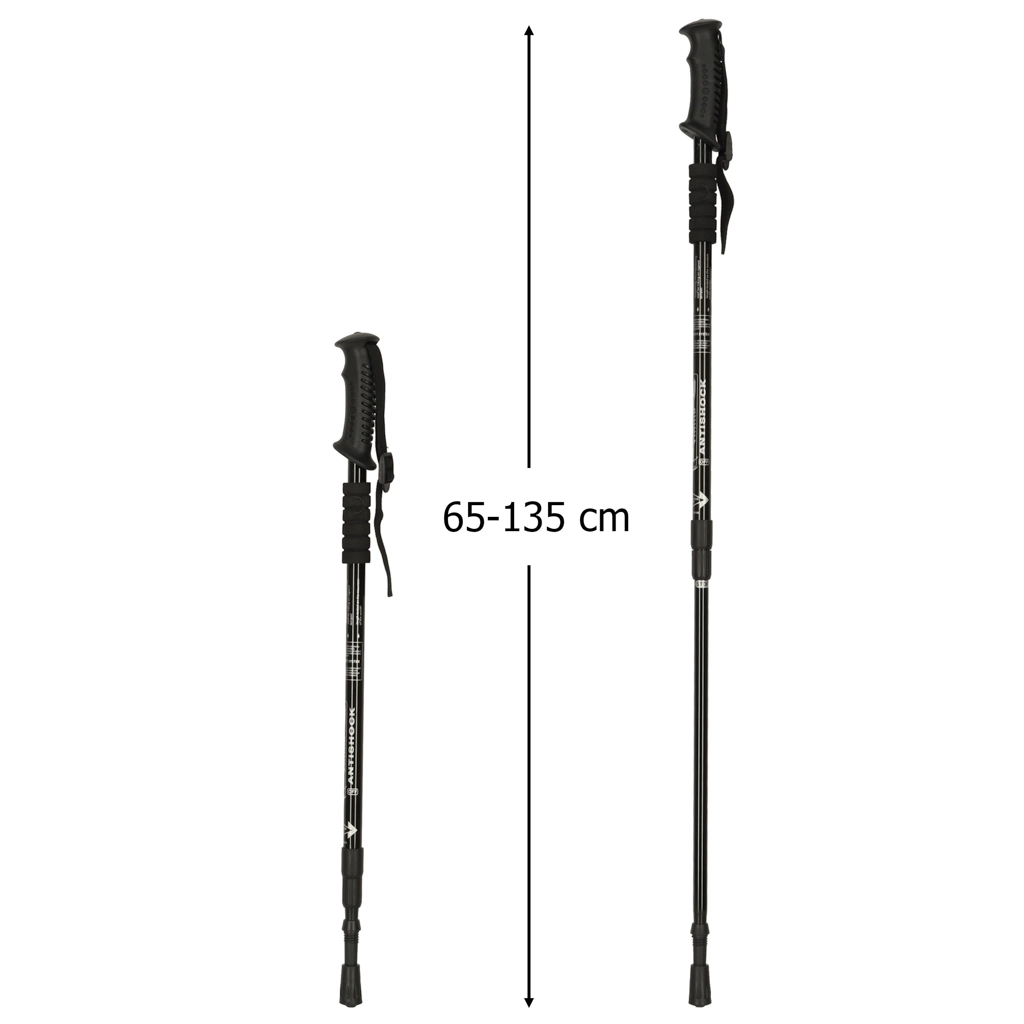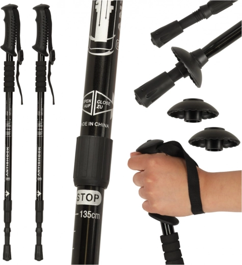 Lazdų ilgis reguliuojamas nuo 65 iki 135 cm, todėl jos idealiai tinka įvairioms reljefo sąlygoms.