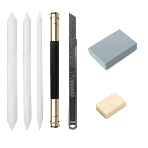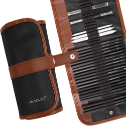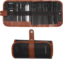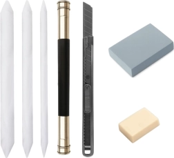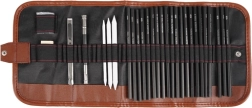 Sudėtyje – 27 kruopščiai atrinkti įrankiai, įskaitant pieštukus, anglis ir kitas priemones, reikalingas eskizavimui.