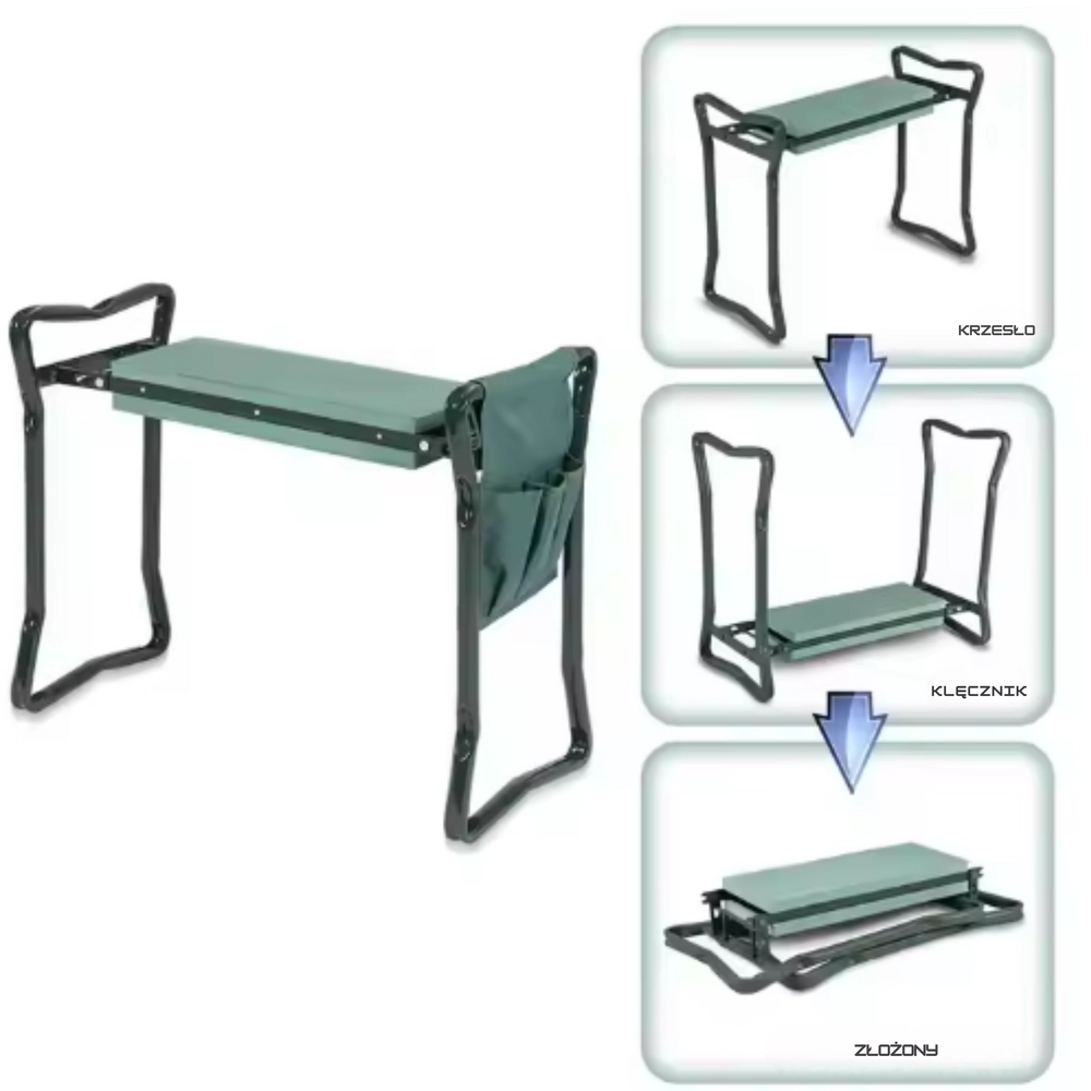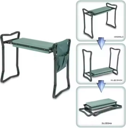 Dėl 3 viename funkcijos kelimėlį galite naudoti kaip taburetę sodinimui, kelimėlį ravėjimui arba suoliuką poilsiui. Minkštas EVA putplasčio pagrindas užtikrina puikų komfortą jūsų keliams. Sulankstoma konstrukcija leidžia lengvai transportuoti ir laikyti.