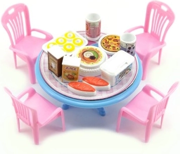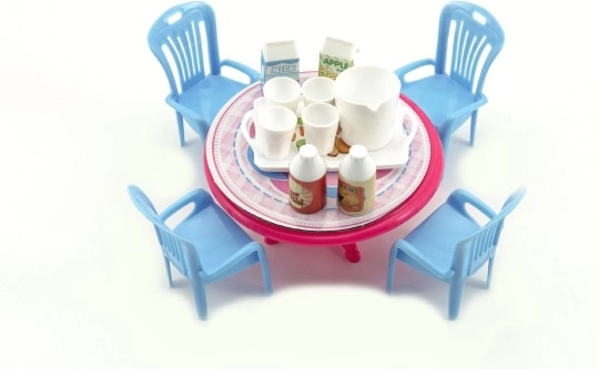 Šis lėlių baldų rinkinys praturtins žaidimų pasaulį gražiu staleliu su kėdutėmis ir smulkiais priedais. Dėl kompaktaus 12 cm dydžio puikiai tinka mažesnėms lėlėms ir lėlių nameliams. Lengvas plastikas yra patvarus ir lengvai prižiūrimas.