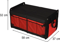 Automobilio bagažinės organizatorius – puikus pagalbininkas kiekvienam vairuotojui. Išsiskiria iki 60 litrų talpa, leidžiančia efektyviai išdėstyti daiktus. Nuimamos pertvaros su lipnia juosta padeda pritaikyti vidinę erdvę pagal jūsų poreikius. Universalus audinys – Oksfordo poliesteris – užtikrina ilgą tarnavimo laiką ir atsparumą nešvarumams.