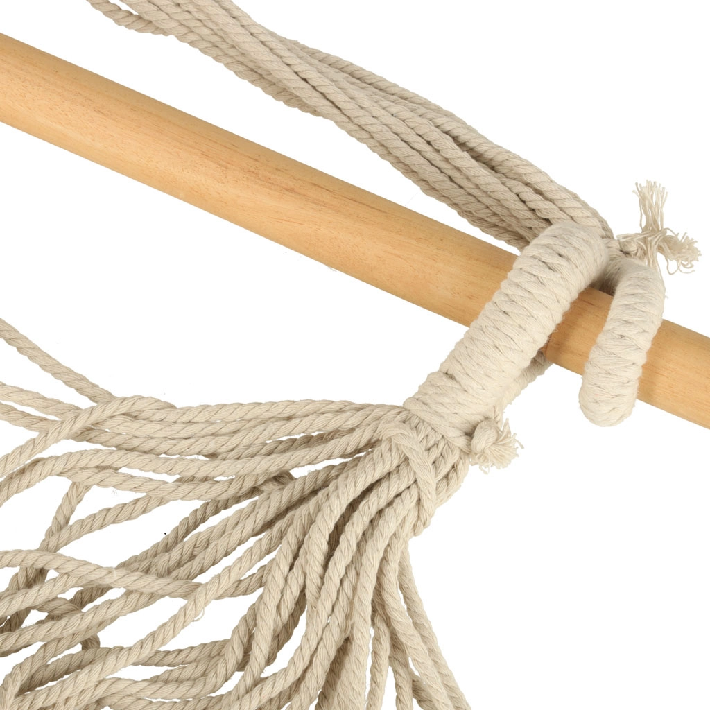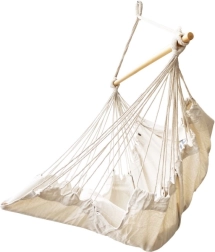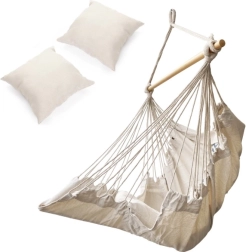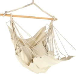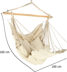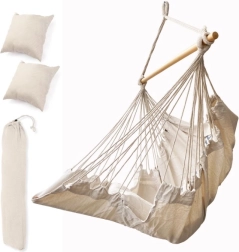 Šis kabantis baldas dera prie boho stiliaus ir taip pat puikiai tinka sodui ar sodybai. Medžiaga maloni liesti ir padeda sumažinti stresą. Rinkinyje yra krėslas, medinė lazda, kabinimo virvės ir dvi patogios pagalvėlės. Įneškite į savo gyvenimą ramybės ir patogumo.
