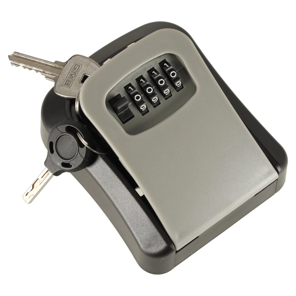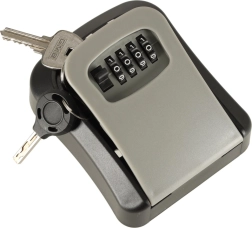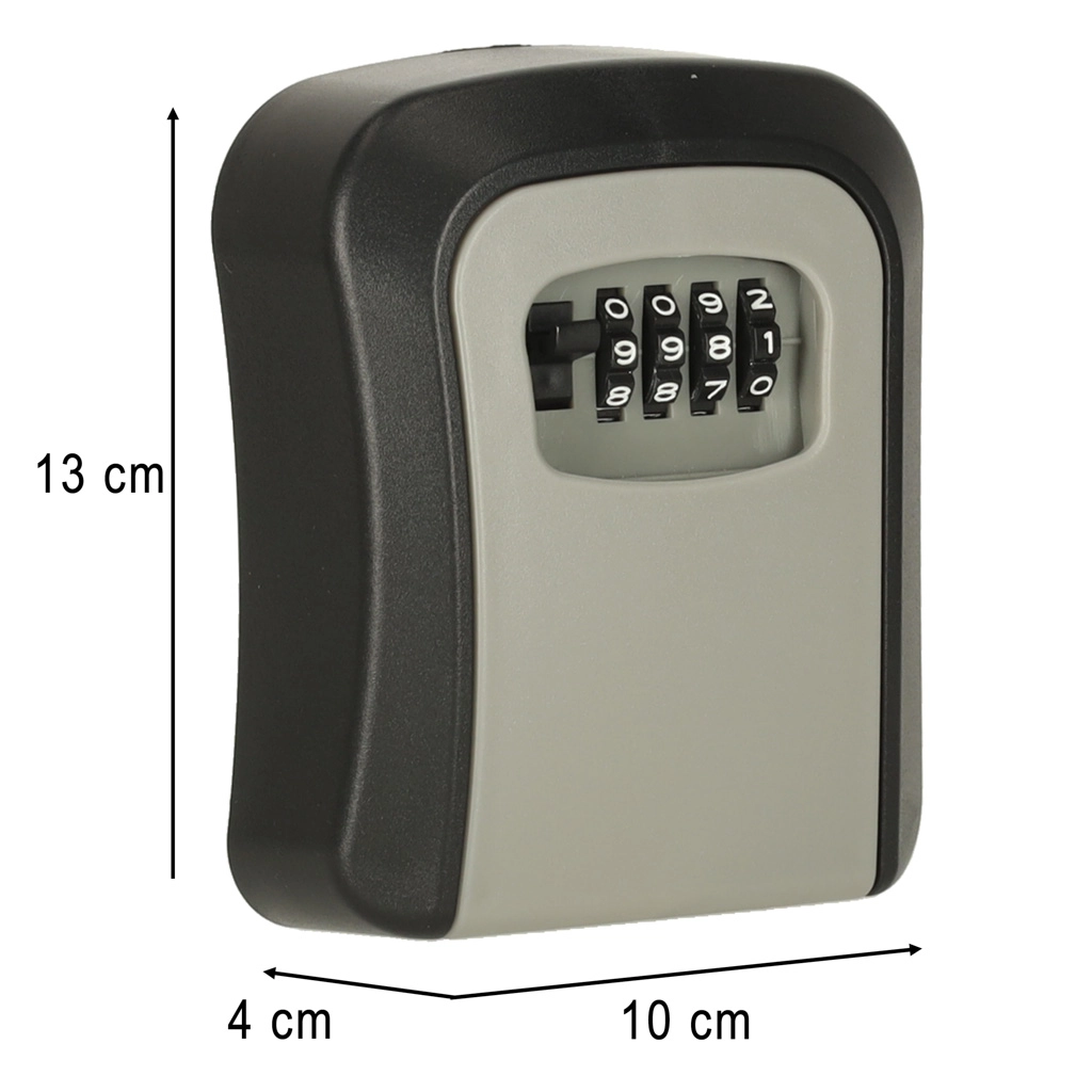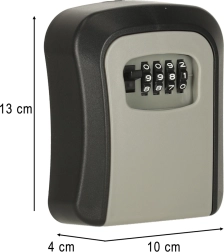 Saugus ir praktiškas raktų seifas su kodine spyna, idealus montuoti ant sienos. Laikykite raktus saugiai dėl jo patvaraus plastikinio korpuso ir patikimos 4 skaitmenų šifrinės spynos.