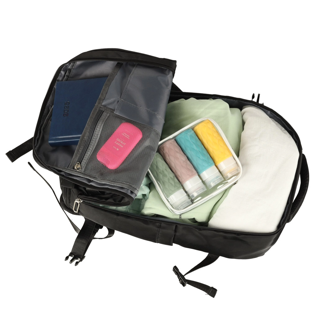 Idealiai tinka tiek ilgesniems, tiek trumpesniems pasivaikščiojimams, ši turistinė kuprinė sukurta naudoti keliaujant įvairiomis transporto priemonėmis. Elastinga juosta palengvina jos tvirtinimą prie lagaminų.