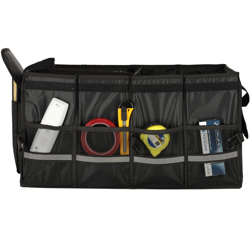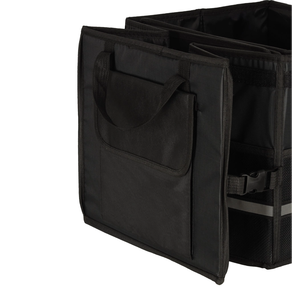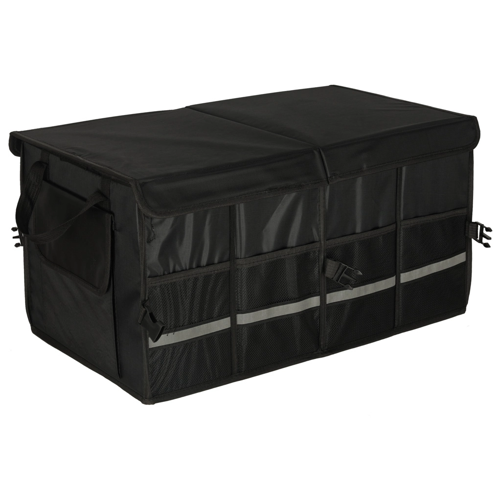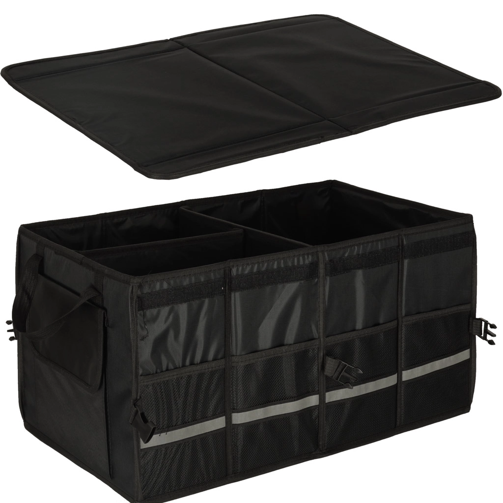 Laikykite savo automobilio bagažinę tvarkingą ir organizuotą su šiuo tvirtu organizatoriumi. Pagamintas iš patvaraus oksfordo poliesterio audinio, atsparaus plyšimui. Juoda spalva užtikrina universalų naudojimą visų tipų transporto priemonėse.