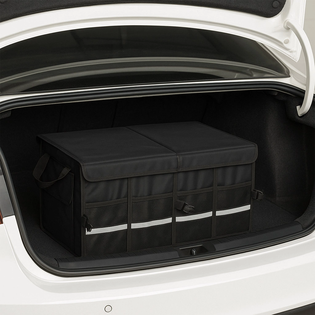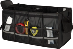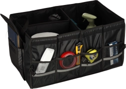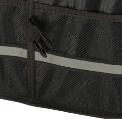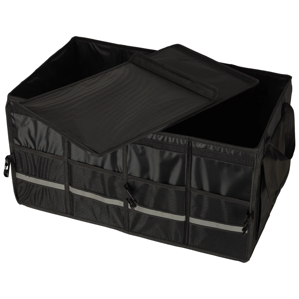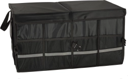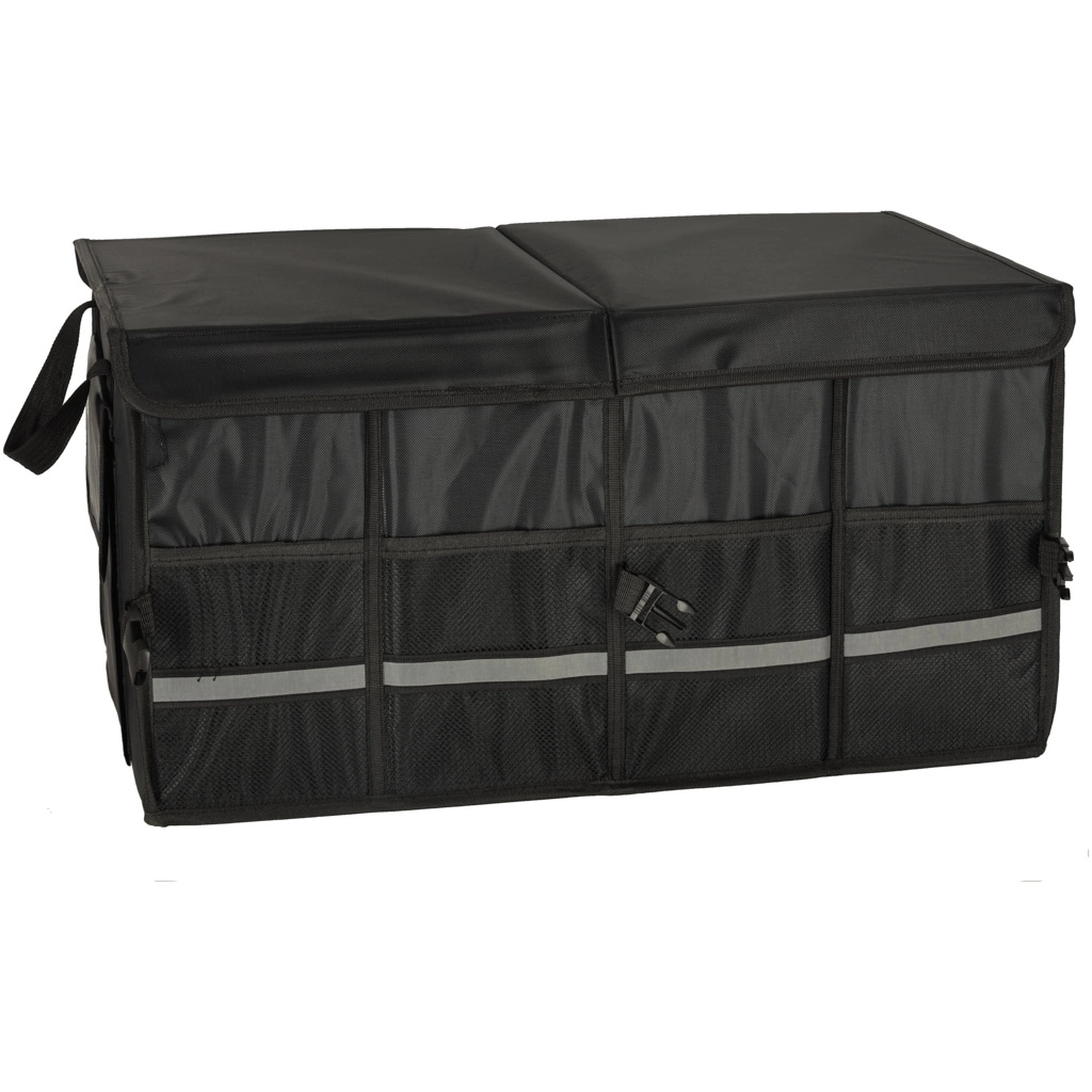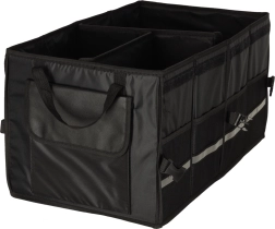 Laikykite savo automobilio bagažinę tvarkingą ir organizuotą su šiuo tvirtu organizatoriumi. Pagamintas iš patvaraus oksfordo poliesterio audinio, atsparaus plyšimui. Juoda spalva užtikrina universalų naudojimą visų tipų transporto priemonėse.