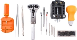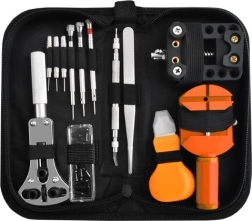 - reguliuojamas raktas, 18 antgalių rinkinys, reguliuojamas laikrodžio laikiklis, 3× kaiščių išėmiklis, precizinis pincetas, 3× atsuktuvas su keičiamais antgaliais, apyrankių trumpinimo įrankis, dangtelių peilis, dėklas