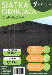 Pilkas šešėlinis tinklas pagamintas iš kokybiško nuo UV spindulių atsparaus polietileno, kuris užtikrina ilgalaikį spalvos ir formos pastovumą. Dėl 140 g/m² gramaturos tinklas neblunka ir nedeformuojasi, yra atsparus įvairioms oro sąlygoms.